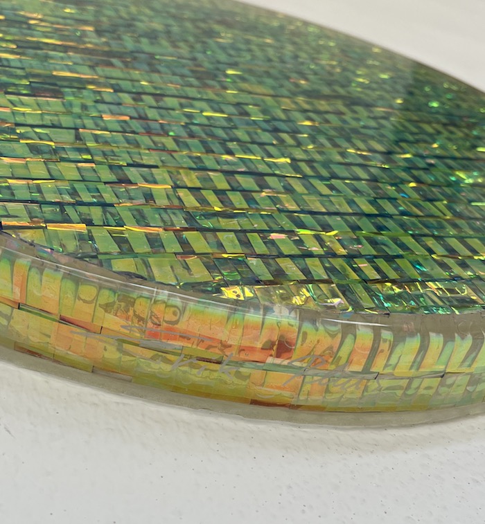 Titel: Deflection BlueTechnik: Mischtechnik u. Kunstharz auf HolzDurchmesser: 42 cmUnikat, handsigniertPreis: 3.600 €