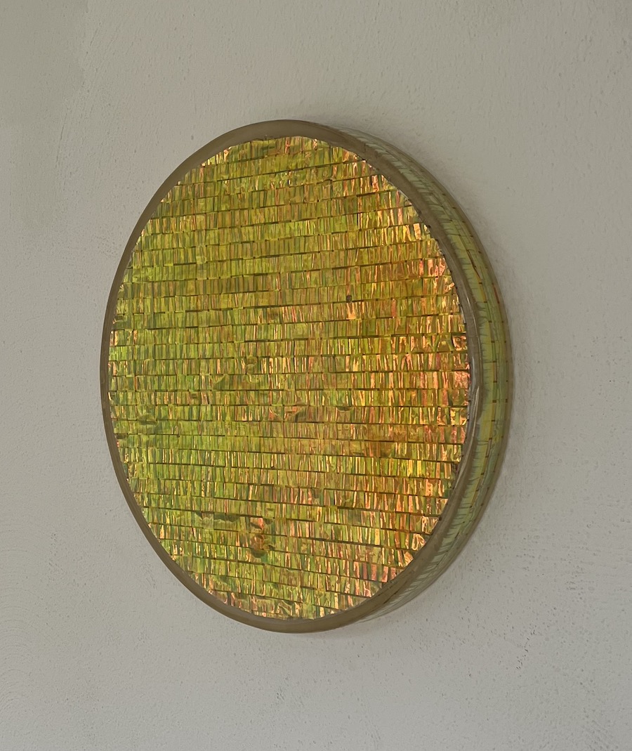 Titel: Deflection GoldTechnik: Mischtechnik u. Kunstharz auf HolzDurchmesser: 42 cmUnikat, handsigniertPreis: 3.600 €